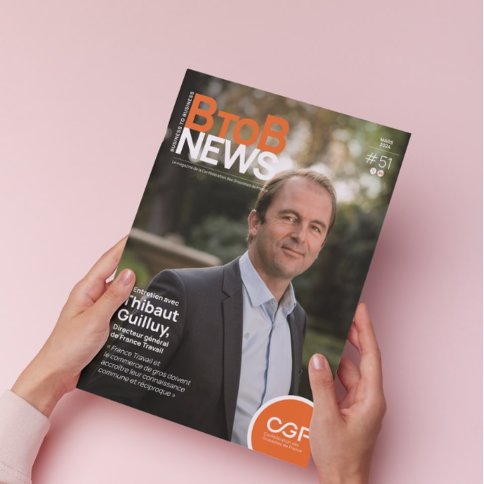 Le directeur général de France Travail, Thibaut Guilluy à la une du dernier numéro du BtoB News